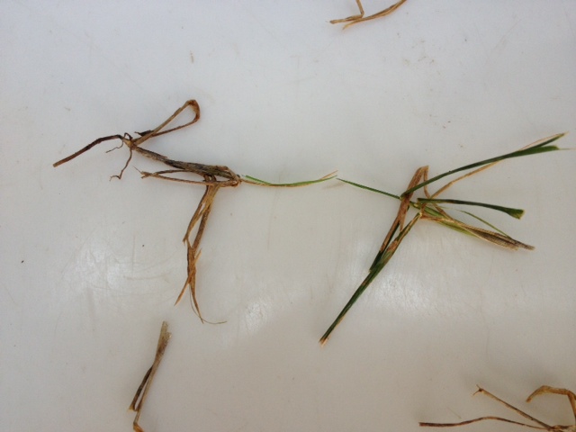 הקטעים החדשים שמתייבשים נראים כאילו לא קיבלו מים (עלים נסגרים אך ירוקים) גם אחרי השקייה וכעבור יום מתייבשים לחלוטין.