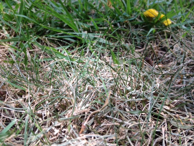 אז מה בכל זאת רואים בתמונות? ניתן להסיק מהן שהפגיעה מתחילה בקצה העלה ומשם היא מתקדמת כלפי מטה עד להתיבשות כוללת שלו. בשני העלים השמאליים בתמונה שצרפת מגבול האזור הפגוע, ניתן לראות את תחילת הפגיעה בקצה העלה, אבל יחד עם זאת יש גם פגיעות התיבשות אופיניות בתוך הטרף עצמו. עוד ניתן להבחין בקיומם של "קורים" בתמונה הלפני אחרונה מהמחזור הקודם. "קורים" אלה הם תפטיר הפטריה (mycelium בלעז), כלומר גוף הפטריה. יותר מזה לא ניתן להסיק מאיכות התמונות. על סמך עדויות אלה נראה שהדשא נפגע על-ידי יותר מגורם מחלה אחד, למעשה שני סוגי פטריות. הסוג האחד, ואי אפשר לדייק במין, הוא ככל הנראה הפטריה Ascochyta, והגורם השני הוא סוג הפטריה Sclerotinia הגורם למחלה הקרויה "כתמי דולר" בגלל שהיא מתחילה ככתמים עגולים קטנים (קוטר של עד ל-5 סמ') דומים לדולר של פעם ממתכת. פגיעות מקומיות כאלה מתאחות עם הזמן ויוצרות משטח גדול יותר בעל צורה אקראית. יתכן שרק אחת מהשתיים פגעה בדשא שלך, ויתכן אף שהגורם הוא אחר שלא ניתן לזהותו מהנתונים שסיפקת, אבל כמעט אין ספק שמדובר בפגיעה פטרייתית.