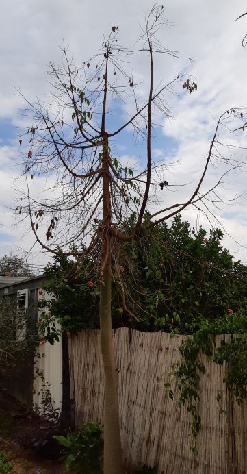 קשה לפגוע ולהרוג עץ ברכיכיטון אבל זה קורה לפעמים.