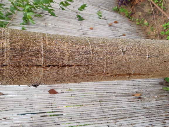 בנוסף, נראים בגזע העץ סדקים ארוכים.