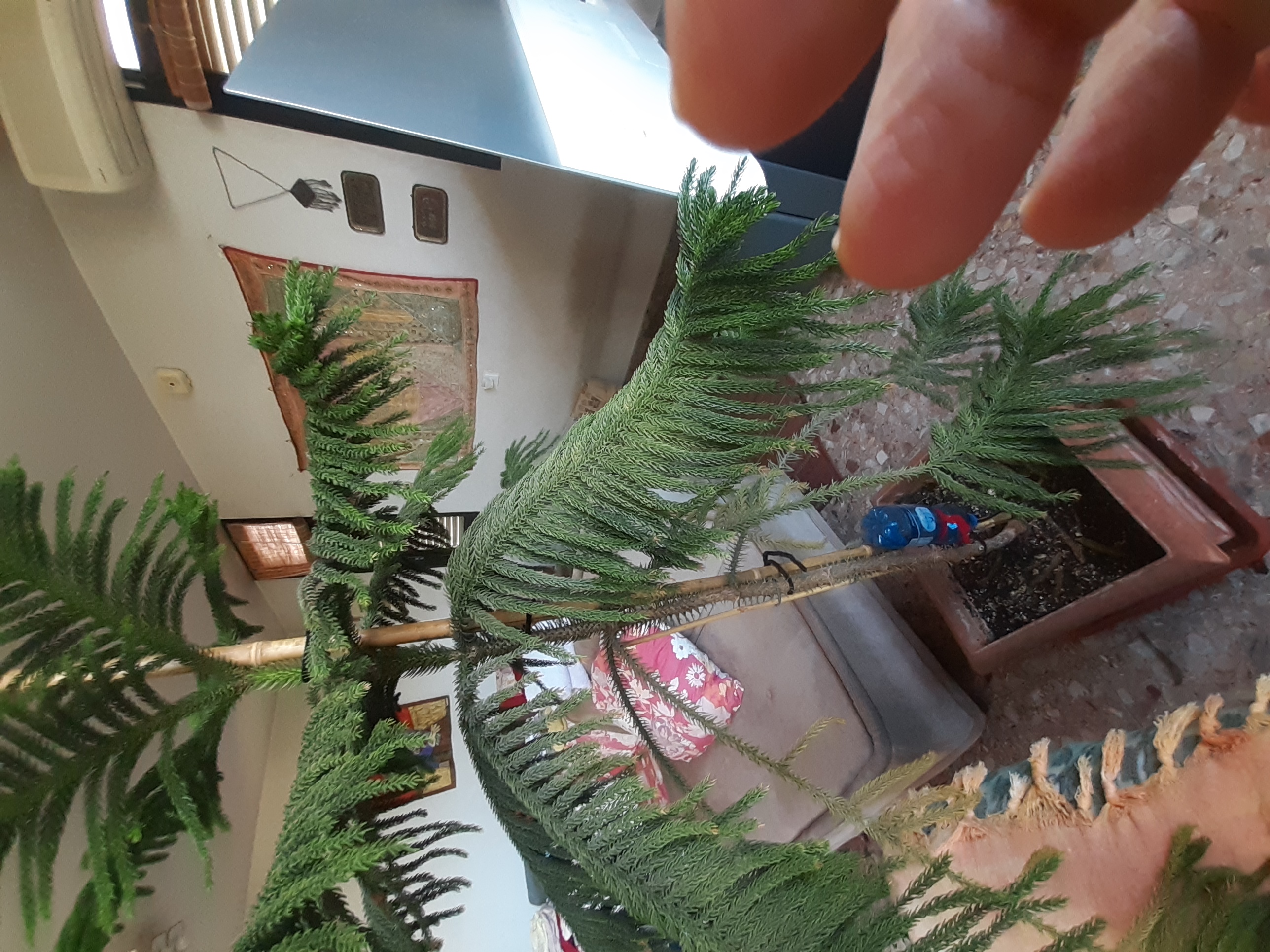 מתנצל יש לי בעיה בעיניים מדובר בארוקריה כמובן ומסיפור םשוט יותר. עץ ענקי במקור ונוטה ליצור גזע על ידי השרת עלים וענפים בהדרגה אבל בעיקר מחטים/עלים. מתחת לעץ כזה בחוץ מושמדים כל הצמחים בגלל הכיסוי של העלים שנשרו.לא להתרגש . בעץ גבוה קיימת אפשרות של הסרת חצי גובה ויותר ואז העץ מתחדש.