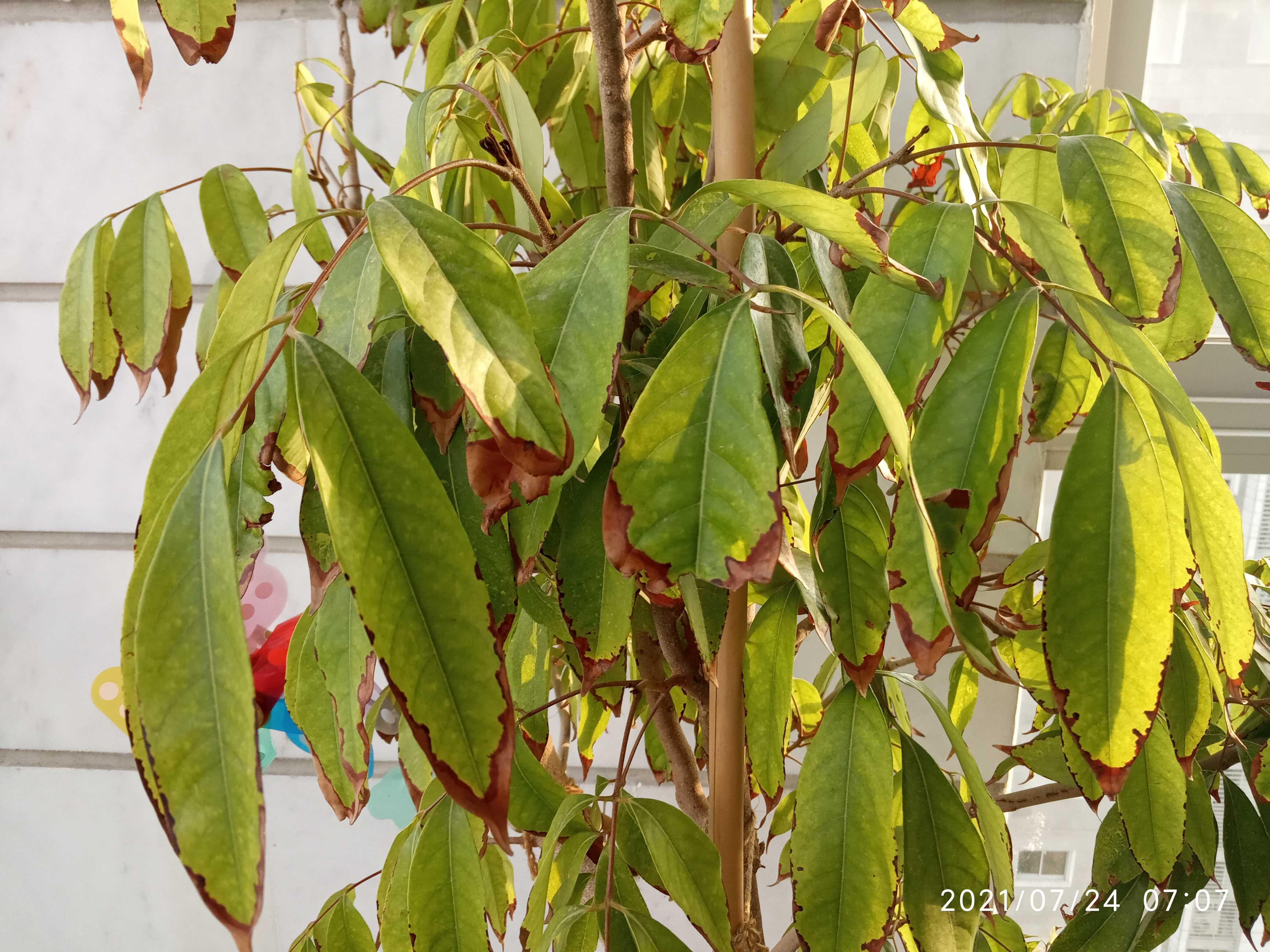 קצוות העלים נעשים חומים ואף מתייבשים.