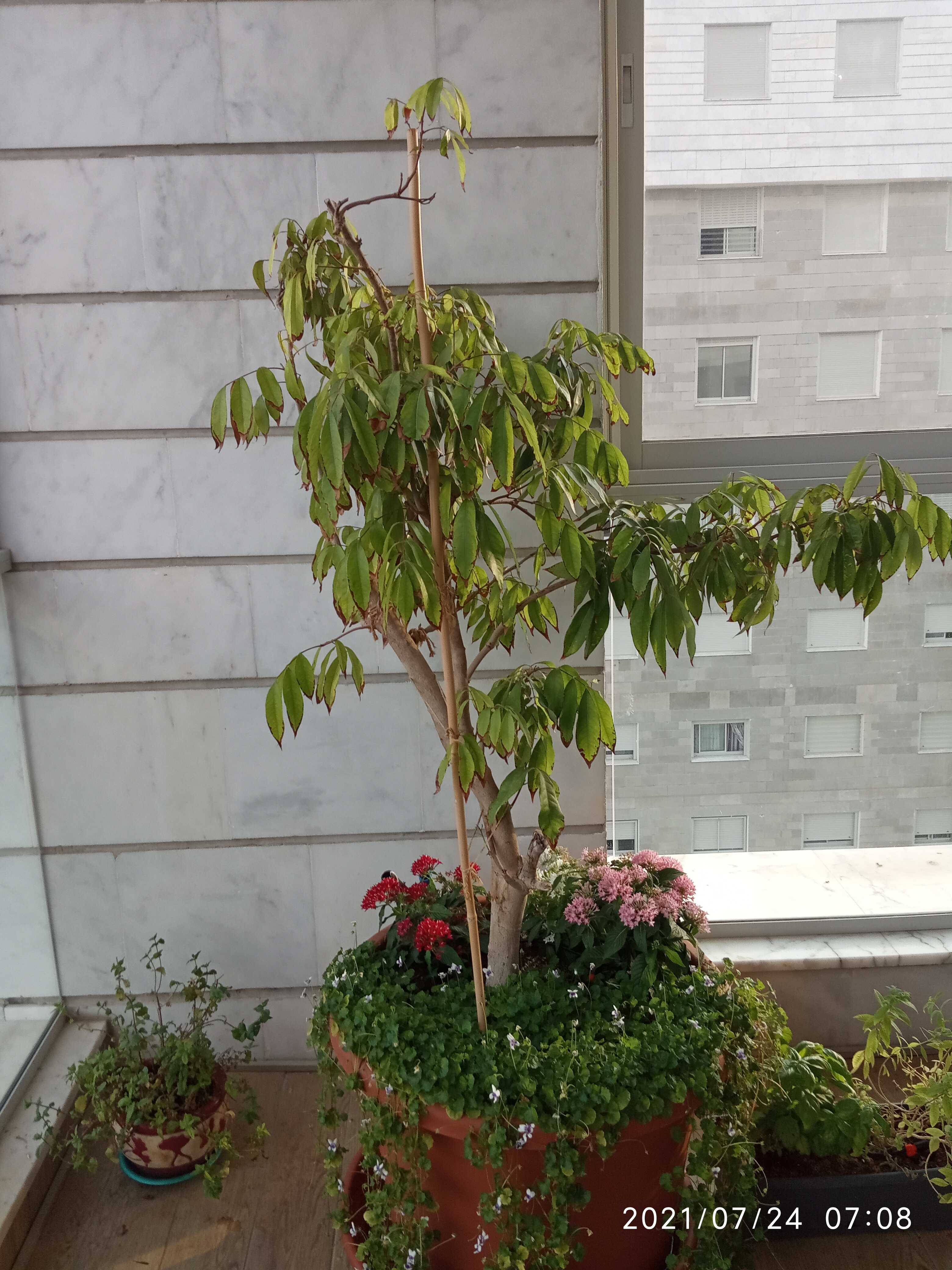 עצי ליצי ומנגו צעירים שתולים בעציצים גדולים (120 ליטר).