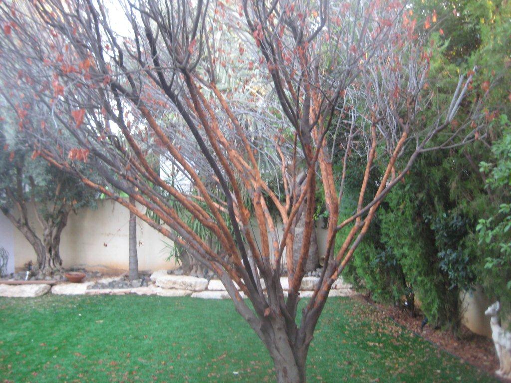 מתחילת השלכת התחלנו להבחין בהתקלפות פתאומית של גזע השזיף הפסרדי. העץ נמצא אצלינו כ-10 שנים ולעולם לא הבחנו בתופעה הזו, רק השנה זה התחיל, בתחילת הסתיו.