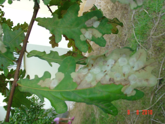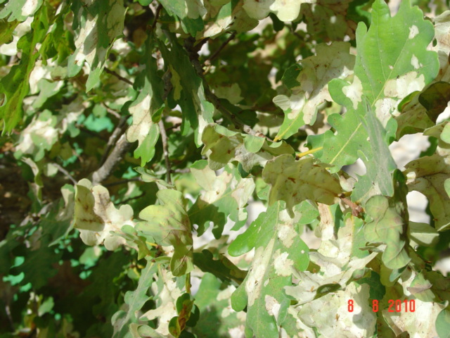 יש לנו בחצר עץ אלון ארוך עוקצים. הוא נראה חולה, אני מצרפת את התמונה. בבקשה תעזרו -- למה זה קרה ומה לעשות?