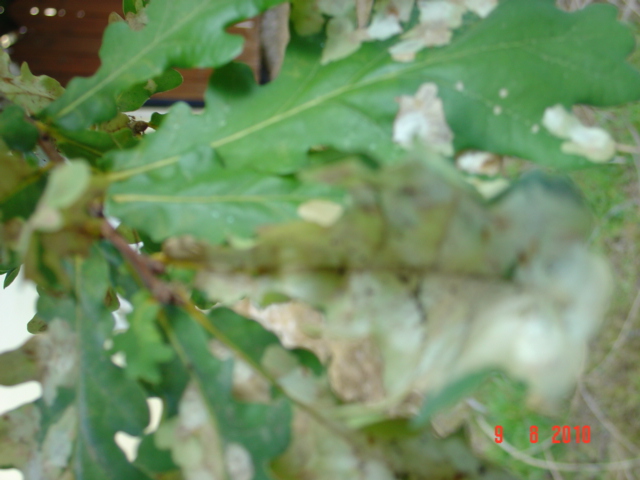 כפי שציינתי לעיל, אין ביטחון מלא בזהותו של הפתוגן אלא אם כן עורכים בדיקות מעבדה. התמונה הראשונה שצרפת היום עלולה להעיד על פתוגן עוד יותר קשה, פטריה האחראית לתופעה באלונים (לא רק) הקרויה "סינדרום המוות הפתאומי". יחד עם זאת, מאחר שאין אלונים נוספים בסביבה (הדרים לא רגישים לגורמי מחלה אלה) את יכולה לנסות לעקוב אחרי ההתפתחויות לפני שנגיע למסקנה שצריך להשמיד את העץ. להשמיד, אגב, פרושו לכרות את העץ עד ממש לציצת שורשיו ולשרוף הכל באש, או למצער להרחיק למזבלה רחוקה אם שריפתו באש אינה פרקטית מבחינתך. יש סיכוי קטן מאוד שהעץ יצליח להתאושש ממצבו הנוכחי. אם את רוצה לבחון סיכוי זה, הקפידי לאסוף את העלים הנגועים - הן אלה שעל העץ והן כל עלה שנושר לקרקע - לתוך שקית ניילון. קישרי את השקיות והרחיקי לאשפה. העץ יהיה בהמשך הסתיו בשלכת. אם יתאושש תראי זאת באביב הבא. כפי שציינתי כבר, לי תוצאה זו נראית רחוקה. אם המסקנה תהיה שיש להשמיד את העץ, אל תשתלו דבר במקום בו הוא נמצא, אלא לאחר חיטוי הקרקע.